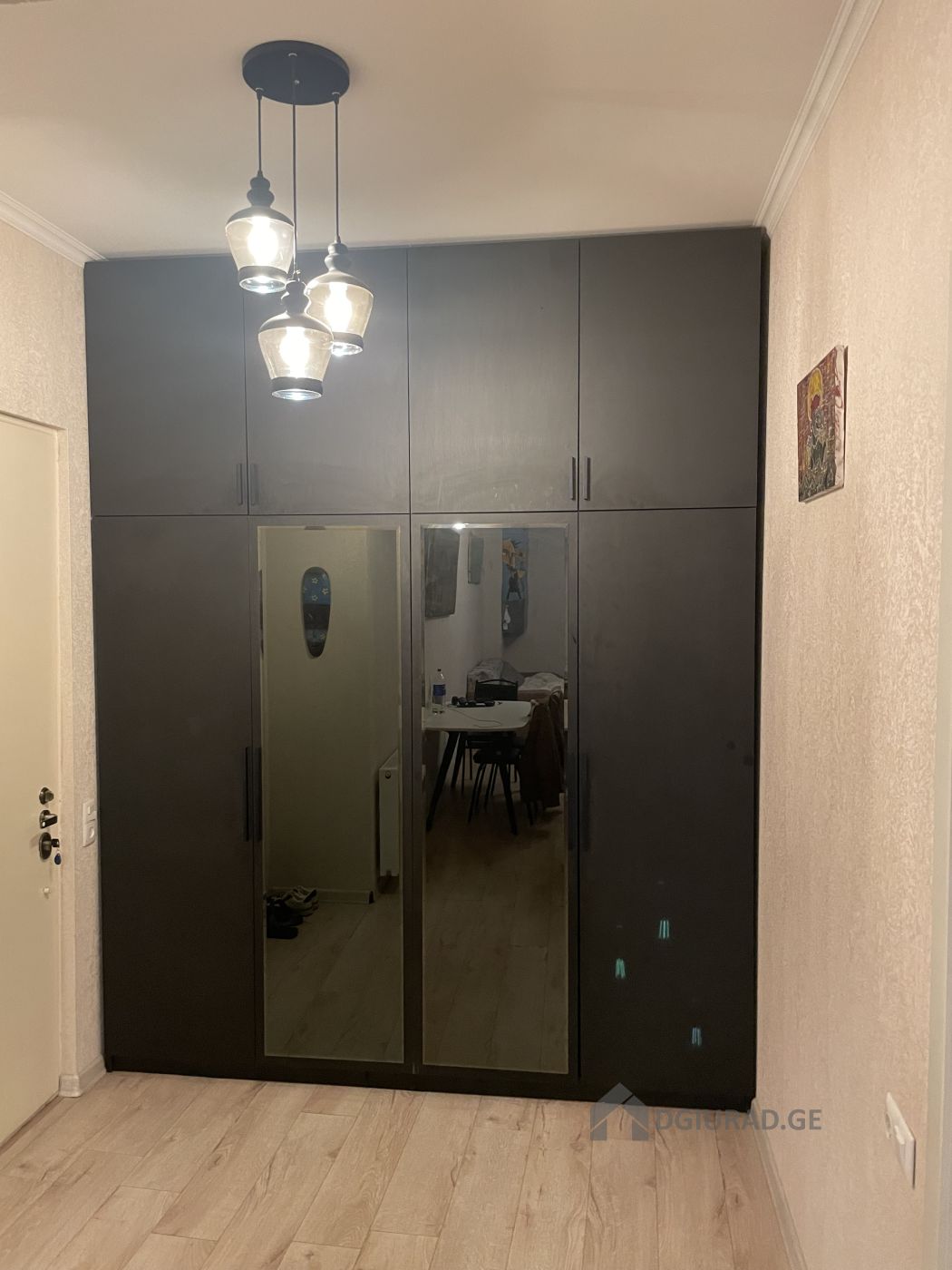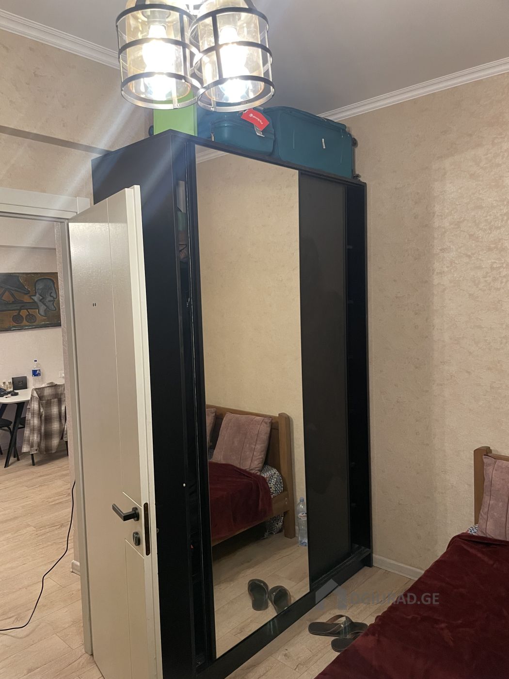 ავეჯი: სრულად მოწყობილი (დივანი, მაგიდა სკამებით, ორადგილიანი საწოლი, გარდერობი).