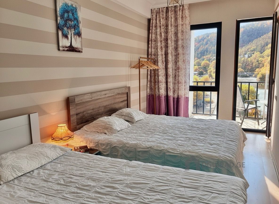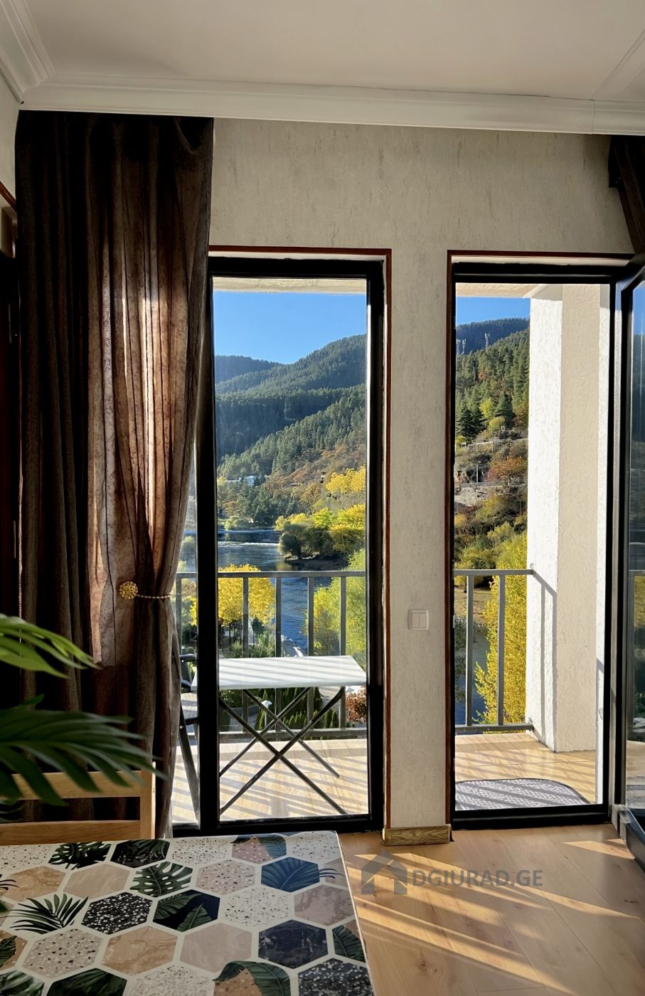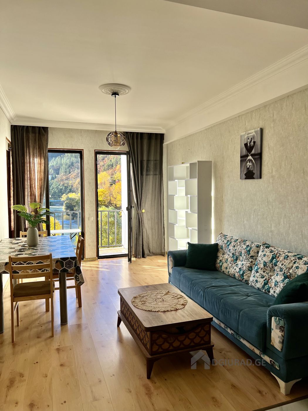 ქირავდება დღიურად ბინა ბორჯომში, საუკეთესო ადგილას. დიდი აივნით, მთის და მდინარის ულამაზესი ხედებით. ახალი გარემონტებული, ახალ აშენებულ კორპუსში. გათვლილია 3+1 პერსონაზე. სტუდიო მისაღები-სამზარეულო, სადაც არის გასაშლელი დივანი და იზოლირებული საძინებელი, სადაც დგას ერთი ორსაწოლიანი და ერთი ერთსაწოლიანი. ბინაში არის ყოველგვარი საჭირო ტექნიკა (სარეცხი მანქანა, მაცივარი, სმარტ ტელევიზორი, მიკროტალღური ღუმელი, ელექტრო ჩაიდანი, თმის ფენი) ინტერნეტი/WiFi, სამზარეულოს ინვენტარი, ჭურჭელი. მის: გრიგოლ რობაქიძის 5გ. პარკიდან 1.5 კმ. დაშორებით. მანქანით 5 წუთის, ხოლო ფეხით 20 წუთის სავალზე. P.S. გთხოვთ გაითვალისწინოთ, შენობაში არ ფუნქციონირებს ლიფტი. სართული არის მე-4.