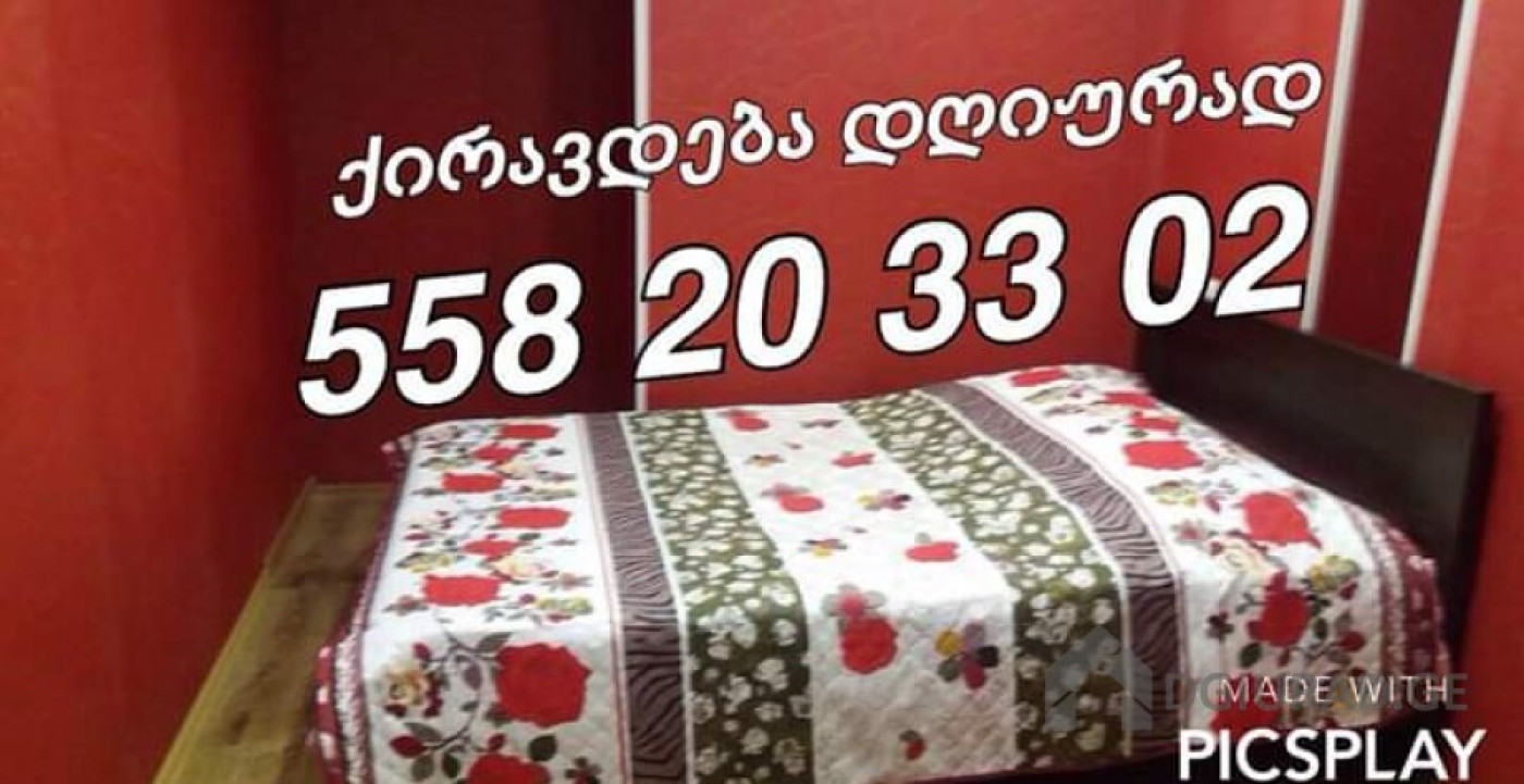 ქ ი რ ა ვ დ ე ბ ა დღიურად და საათობრივად 1- 2- 3 ოთახიანი ახალი გარემონტებული, თანამედროვე დიზაინის, ავეჯით, ტექნიკით, ინტერნეტით და ყველა საჭირო ნივთებით კეთილმოწყობილი ბინები საბურთალოს ცენტრში: პეკინზე. საათობრივი გაქირავებით 10 ლარიდან , 1- 20 ლარი, 3- 4 საათი 40 ლარი. ღამიდან დილამდე 60 ლარიდან, 24 საათი 80 - 100 ლარი.