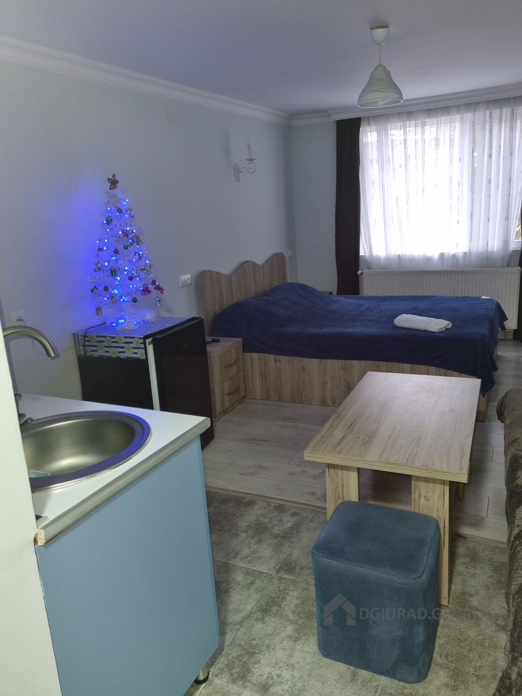 ქირავდება იზოლირებული აპარტამენტი სტუდიო ყველა საჭირო საყოფაცხოვრებო ნივთითა და ინვენტარით. თავდება 2+1 პერსონა. ბინა მდებარეობს ტყესთან ახლოს მშიდ და ეკოლოგიურად სუფთა გარემოში.