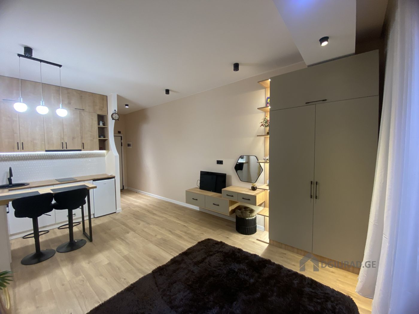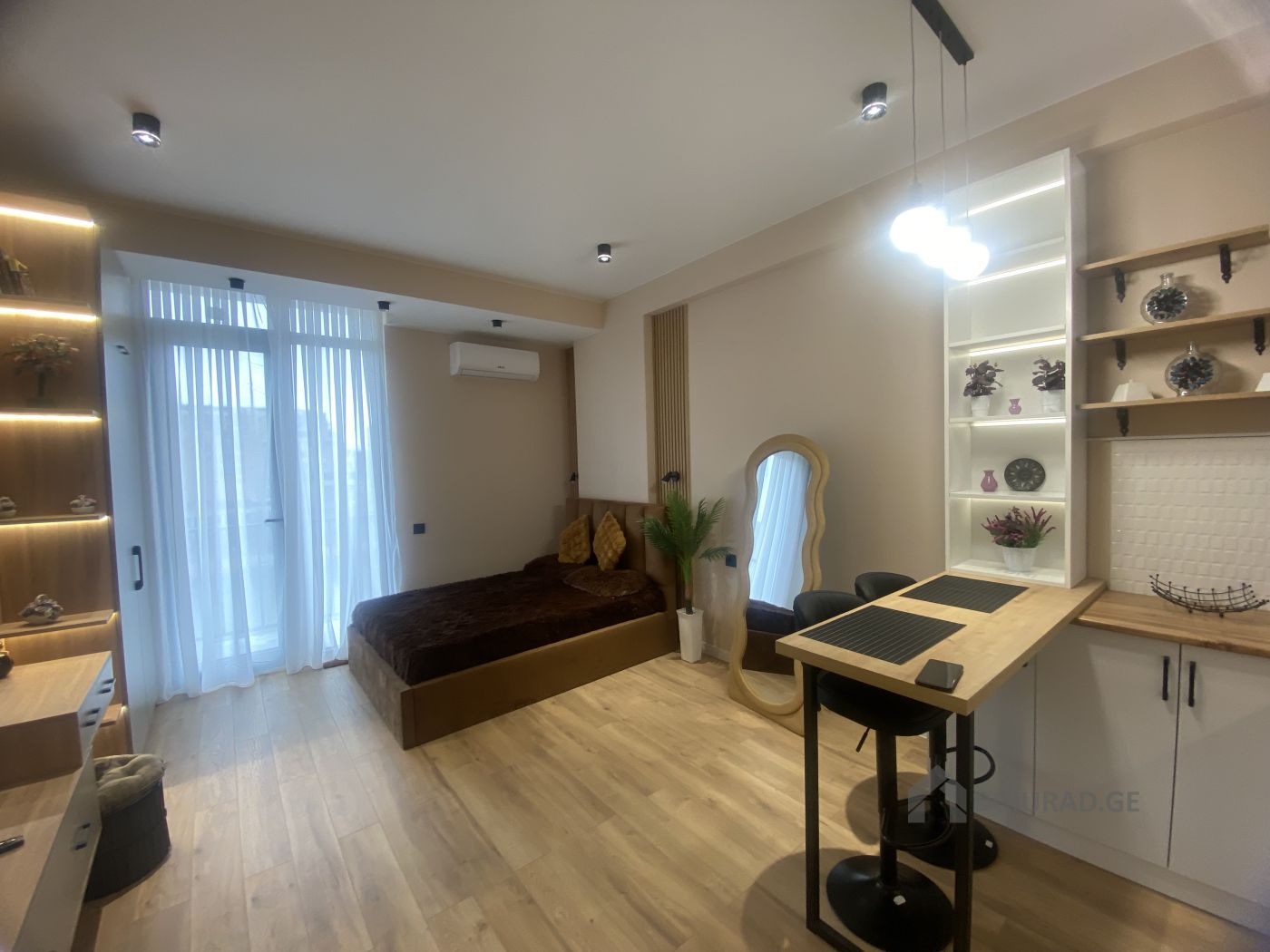 ქირავდება ახალ კორპუსში უცხოვრებელი ახალი რემონტით სტუდიოს ტიპის ბინა. მყუდრო და ნათელი. ულამაზესი მტკვრის და ქალაქის ხედით.