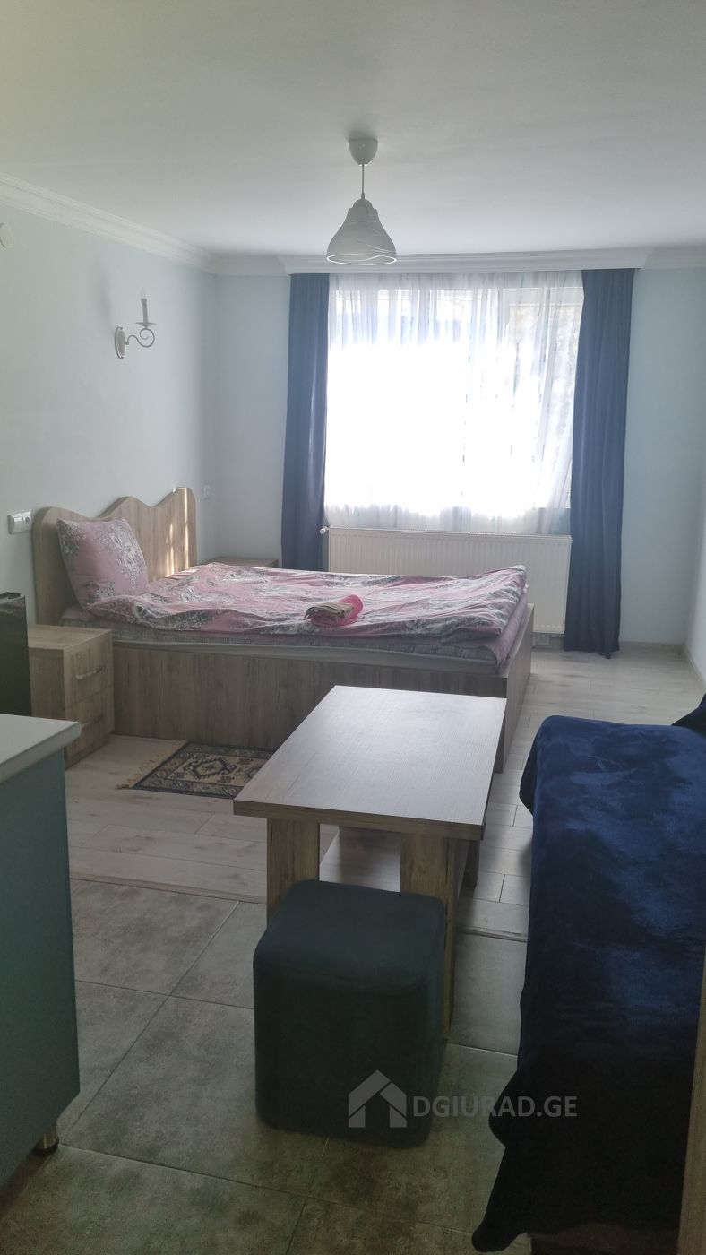 ქირავდება იზოლირებული აპარტამენტი სტუდიო ყველა საჭირო საყოფაცხოვრებო ნივთითა და ინვენტარით. თავდება 2+1 პერსონა. ბინა მდებარეობს ტყესთან ახლოს მშიდ და ეკოლოგიურად სუფთა გარემოში.