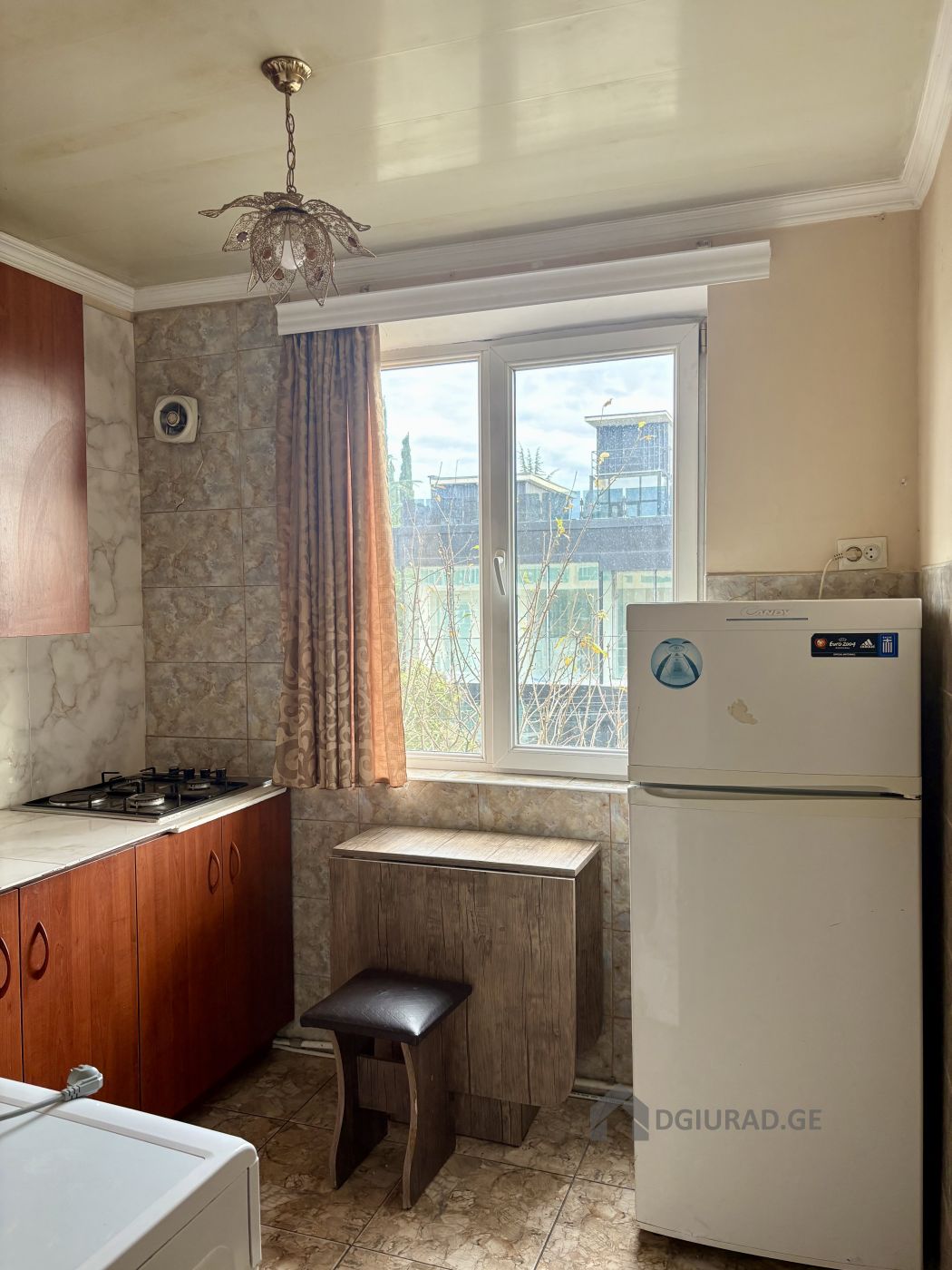 ქირავდება დ ღ ი უ რ ა დ ქუთაისში ერთ ოთახიანი ბინა, კონდიციონერით, ცივი-ცხელი წყლით, წყლის ავზით, აივნით, რკინის კარებით, გაზქურით, კარმით, გაზის წყლის გამათბობლით, მაცივრით, სარეცხი მანქანით, ტელევიზორით, მეტალოპლასტმასის კარფანჯრებით, ინტერნეტით, სამზარეულოს ინვენტარითა და ახალი ავეჯით. მის: ი.ჭავჭავაძის #52 მდებარეობს ავტოსადგურ ოკრიბას წინ, მაკდონალდსთან ახლოს ფასი: 45 ლარი. ტელ: 577417579