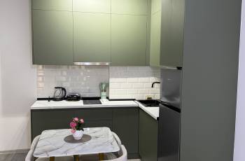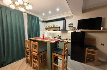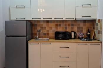 ● სამზარეულო, ჩაშენებული ქურით, მაცივარი, აბაზანა, ცენტრალური გათბობა. ჭურჭელი, თმის ფენი, უთო, ტელევიზორი, ინტერნეტი ყველანაირად აღჭურვილია.