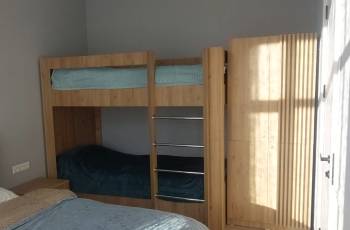მგზავრების მეექვსე კორპუსის მეორე სართულზე ქირავდება ორ ოთახიანი ბინა,რომელიც გათვლილია 4+2 პერსონაზე.მისი ფართობი შეადგენს 38 კვადრატს.ბინა აღჭურვილია ჩამონტაჟებული ელექტრო გასქურით,მაცივრით,სარეცხი მანქანით,ტელევიზორითა და ინტერნეტით.საძინებელში არის ორი ორ სართულიანი საწოლი თავისი სათავსოთი და ტევადი კარადით.სტუდიოს ოთახში განთავსებულია გასაშლელი დივანი.ბინას აქვს დიდი მზიანი აივნითან უნდა იქონიოთ საკუთარი თეთრეული,ან შეგიძლიათ იქირაოთ ადგილზე.