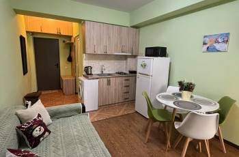 From the owner - For rent in Bakuriani, in the best location!!! In the "" MGZAVREB"" building on Tsakadze Street, a 2-room studio-type sunny apartment. Fully furnished with all kinds of furniture and appliances. (There are necessary kitchen utensils). With central heating. With internet and television. The hotel has free parking. On the territory of the hotel there are: billiards, bakery, supermarkets, restaurant, pizzeria/cafe. There is also a small ice rink on the territory of the hotel.The price depends on the date of booking and the number of days! (Changes accordingly). Tel: 592 61 27 35