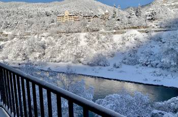 ქირავდება დღიურად ბინა ბორჯომში, საუკეთესო ადგილას. აივნით, მთის და მდინარის ულამაზესი ხედებით. ახალი გარემონტებული, ახალ აშენებულ კორპუსში. გათვლილია 2+1 პერსონაზე. სტუდიო მისაღები-სამზარეულო, სადაც არის გასაშლელი დივანი და ერთი საძინებელი, ორსაწოლიანით. ბინაში არის ყველანაირი საჭირო ტექნიკა (სარეცხის მანქანა, მაცივარი, ტელევიზორი, მიკროტალღური ღუმელი, ელექტრო ჩაიდანი, თმის ფენი) ინტერნეტი/WiFi, სამზარეულოს ინვენტარი, ჭურჭელი.