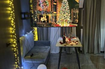 ⛄️ ბინა სადაც კომფორტი რომანტიულობას ხვდება, ხოლო საახალწლო ზღაპარი რეალობად იქცევა, ბინაში დაგხვდებათ ჯაკუზი, ❤️ დიდი ლამაზად მორთული ნაძვისხე, საახალწლო განათებები კედლებზე და გემოვნებიანი ინტერიერი რომელიც აღგაფრთოვანებს, ბინაში არის იდეალური სისუფთავე, ჯაკუზი იხეხება უმაღლესი ხარისხის ხსნარებით, ბინას აქვს ასევე აივანი სადაც შეძლებთ მოწევას, (შიდა სივრცეში მოწრვა დაუშვებელია)