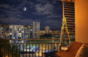 თანამედროვე ბინა შთამბეჭდავი ხედით