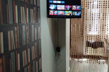 ბინაშია იდეალური სისუფთავე. პირველადი მოხმარების საგნები.ანდროიდ ტვ. ვაიფაი