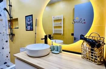 ვარკეთილის მეტროსთან კრუგთან ქირავდება ახალრემონტებული, თანამედროვე და კომფორტული ბინა დღიურად და საათობრივად, ბინა გამორჩეულია დიდი, ვერანდის ზომის აივნით, იდეალური სივრცეა დასასვენებლად, დილის ყავისთვის და საღამოს ჩილ mood-ისთვის, ყველაფერი ახალია და მოწესრიგებული, რაც სტუმრობის პირველივე წუთიდან ქმნის კომფორტს