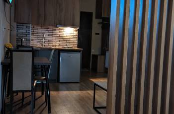 ქირავდება დღიურად თანამედროვე, მყუდრო და კეთილმოწყობილი სტუდიოს ტიპის ბინა საბურთალოზე, პოლიტკოვსკაიას ქუჩის დასაწყისში (უნივერსიტეტისა და ქავთარაძის ქუჩების კვეთაზე), სადაც დაგხვდებათ ყველა საჭირო ტექნიკა და ჰიგიენური საშუალება.