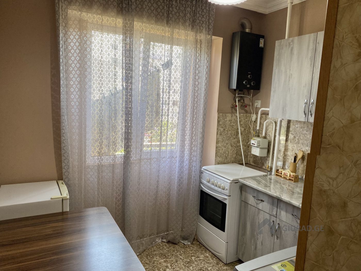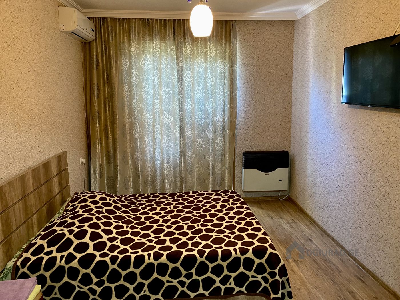 Renovated one-room apartment for rent in Kutaisi, with air conditioner, hot and cold water, water tank, balcony, iron doors, stove, fireplace, gas water heater, refrigerator, washing machine, TV, metal-plastic windows, iron doors, Internet, kitchen equipment and new furniture. Address: Agmashenebeli Avenue #142 Price: 50 GEL. Tel: 599205840