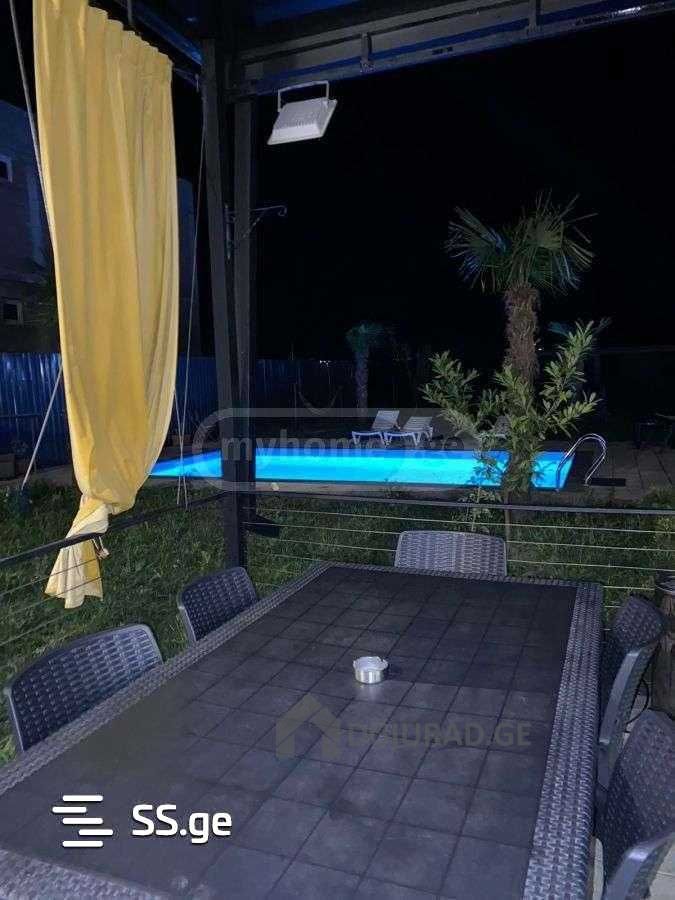 A newly built two-storey house with a pool is for daily rent. The size of the yard is 1100 sq.m. Also in this space there is a 120 sq.m. independent building (living room, club, hall) with Euro renovation, central heating, veranda (30 sq.m.) with parking and a good view. Appliances: washing machine, washing machine, powerful "speaker", yard lighting, garlands. Big and small Makali (grill) skewers. On the spot you will find all necessary equipment for any kind of party: birthday, corporate, wedding, etc. Price varies depending on days and quantity.