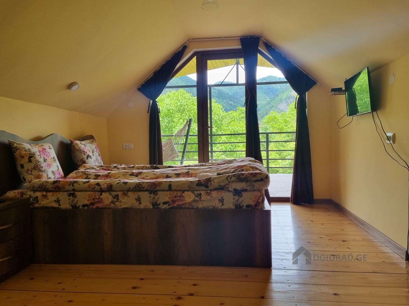 Isolated rooms of different categories are for rent in an ecologically clean environment, near the forest in Borjomi. 1. Studio room - accommodates 2+1 persons. Newly renovated, has its own bathroom, kitchen space, outside isolated sitting area with mountain view. 2. Two-room apartment with stained glass windows with its own balcony and a panoramic view of the mountain. Sleeps 4. Spring and the pollination season are especially beautiful and visible in Borjomi, especially near the forest, very close to the center. Book and feel the fresh and fresh air of the forest.