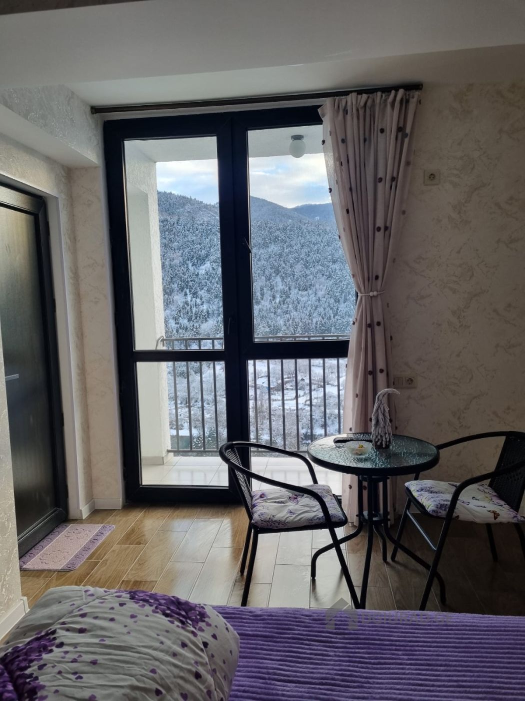 For rent, a newly renovated apartment with a studio balcony, with a harmoniously combined view of the Mtkvari River, the historical Peter's Castle and the mountains. Accommodates 2 persons.
