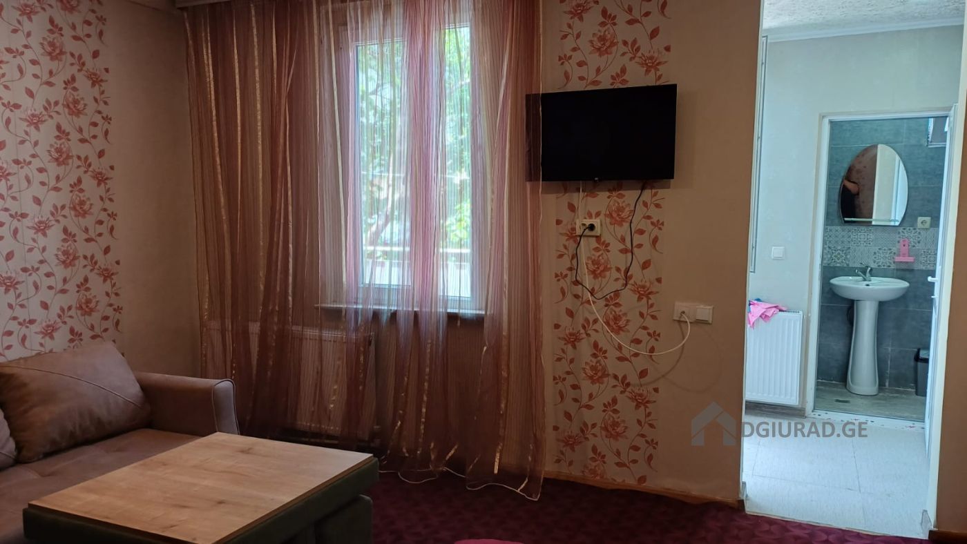 For rent in Borjomi on a daily basis, isolated studio-type rooms in a family hotel. All rooms have individual kitchen and bathroom.