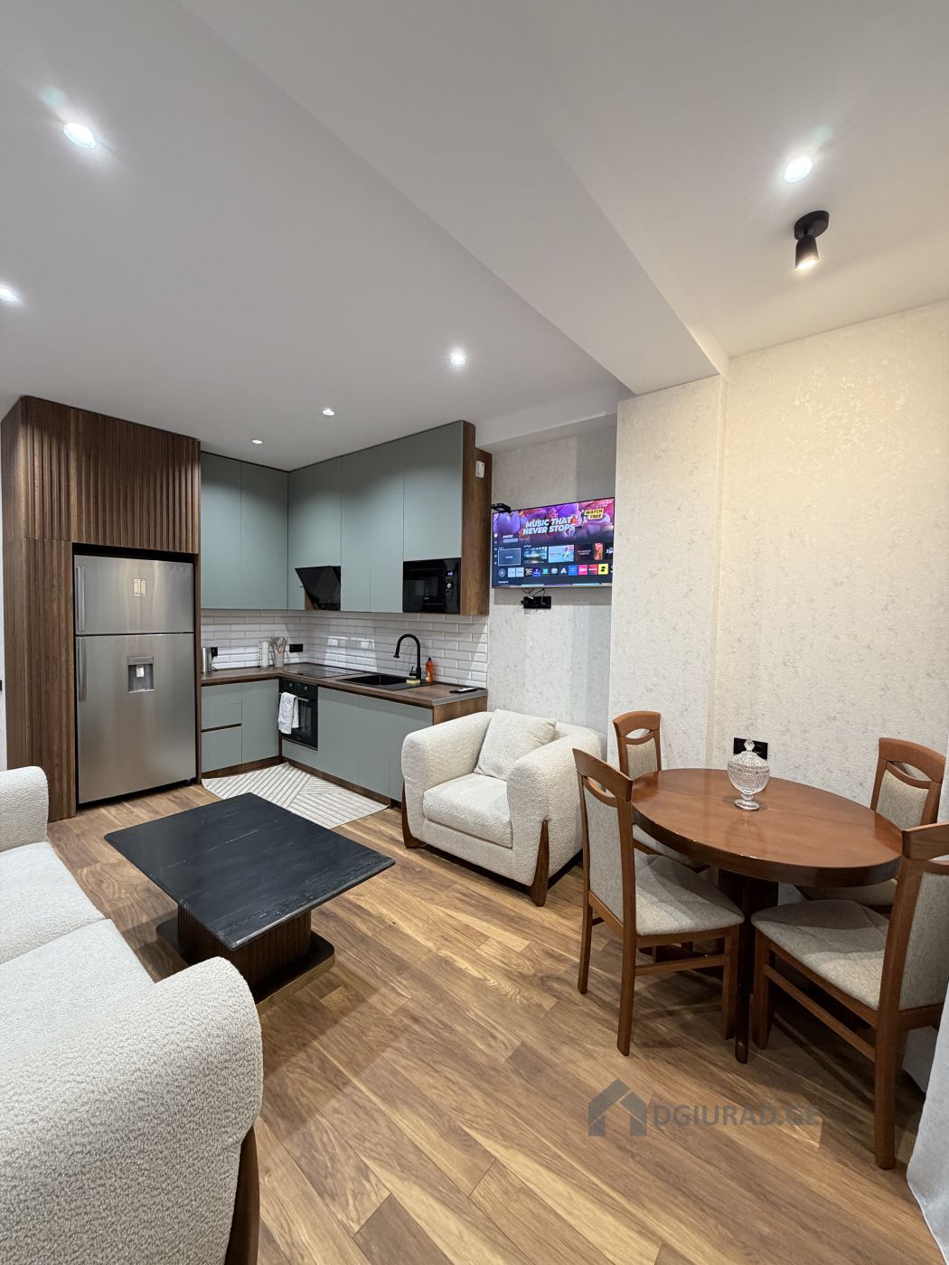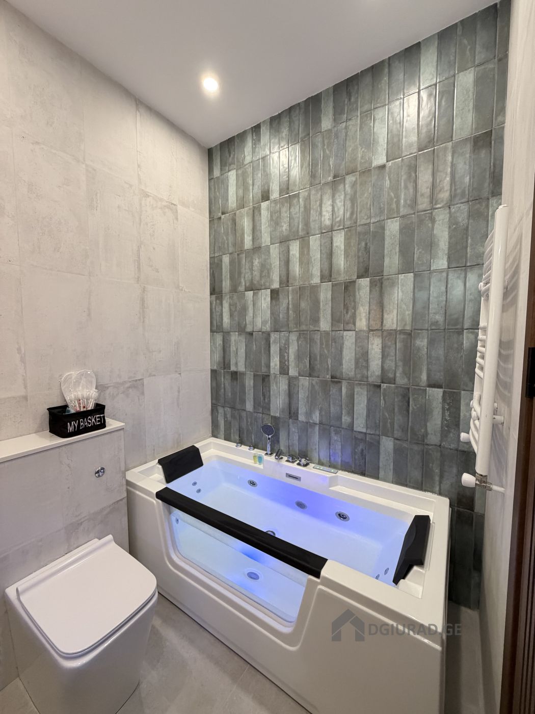 A luxury apartment with two bedrooms is for daily and hourly rent, in a quiet and comfortable location - Didi Digomi, Vefkhitskaosni Street. The apartment has been renovated to a high standard and has a sophisticated interior. Special relaxation and pleasure is provided by the jacuzzi equipped with massage functions, which creates a perfect relaxing atmosphere.