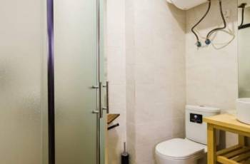 ● სამზარეულო, ჩაშენებული ქურით, მაცივარი, აბაზანა, ცენტრალური გათბობა. ჭურჭელი, თმის ფენი, უთო, ტელევიზორი, ინტერნეტი ყველანაირად აღჭურვილია.