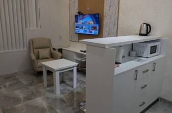 The apartment is favorable to the Heroes Alley is a place where tourist streams of the whole city are gathered. House of Justice, Dancer Fountain, Restaurants, Boulevard and Beach - Everything for delightful life and comfortable vacation. On the 15th floor, a 33 -square -foot studio for a single room newly renovated, the apartment has a balcony in the inner courtyard. Address: Zhuli Shartava 8. Tel: 568 08 27 29