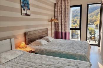 A two-room apartment with a balcony and a panoramic view of the mountain is for rent. It can accommodate 4 people. It is also possible to rent a 2- or 3-person apartment.