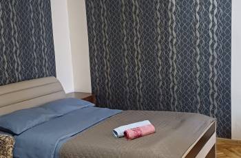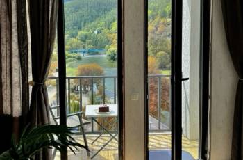 Apartment for daily rent in Borjomi, in the best location. With a large balcony, beautiful views of the mountain and the river. Newly renovated, in a newly built building. Designed for 3+1 persons. Studio living room-kitchen with a sofa bed and a separate bedroom with one double bed and one single bed. The apartment has all necessary appliances (washing machine, refrigerator, smart TV, microwave oven, electric kettle, hair dryer), Internet/WiFi, kitchen equipment, dishes. Miss: Grigol Robakidze, 5th grade. 1.5 km from the park. away. 5 minutes by car and 20 minutes by foot. P.S. Please note that there is no elevator in the building. The floor is 4th.