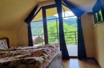 Isolated rooms of different categories are for rent in an ecologically clean environment, near the forest in Borjomi. 1. Studio room - accommodates 2+1 persons. Newly renovated, has its own bathroom, kitchen space, outside isolated sitting area with mountain view. 2. Two-room apartment with stained glass windows with its own balcony and a panoramic view of the mountain. Sleeps 4. Spring and the pollination season are especially beautiful and visible in Borjomi, especially near the forest, very close to the center. Book and feel the fresh and fresh air of the forest.