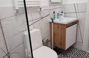 A very clean new apartment. Central heating, new air conditioner, washing machine, all utensils in the latest and very clean.