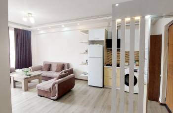 For daily or weekly rent in a new building, a newly renovated apartment near Goodwill in Didi Dighomi offers ideal cleanliness, cozy environment, the best conditions for complete comfort.