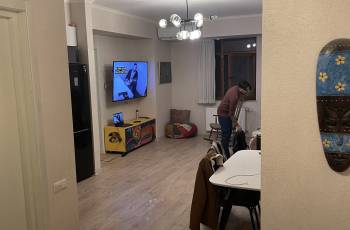 Rent a daily and hourly apartment in Didi Digomi, 100 meters at the Green School. In Demetre Tavdadebuli 16a, the building is equipped with 24 -hour cameras, the apartment has a large balcony. Also on the first floor there is a supermarket magnet and a department of pets is forbidden to enter the apartment.