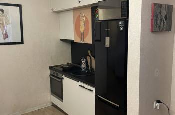 Rooms: A separate bedroom, a bathroom-toilet, and a studio-type living room with a kitchen.