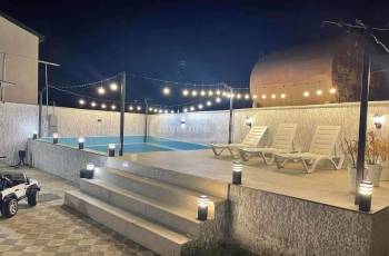 High Premium Class Cottage on Betashvili Street !!!! The house has a large pool (which is heated), a huge yard, sauna, karaoke system and lighting. The basin can also be roofed/opened with a remote control dashboard. The house is equipped with quality furniture and appliances. On the spot you will find all the necessary utensils, grilles and spit. Entry time is determined from 2 pm and can be left until 12 pm of the next day. Please write me on the Watsafa and I will be able to share the house video.