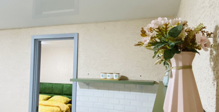 მდებარეობს ქალაქის ცენტრში.ბინა მოწყობილია სამზარეულოს ტექნიკით.არის მყუდრო და სუფთა გარემო.