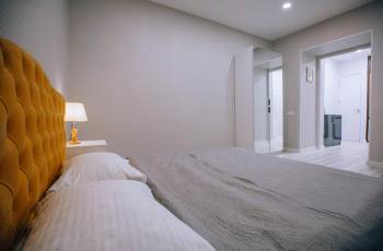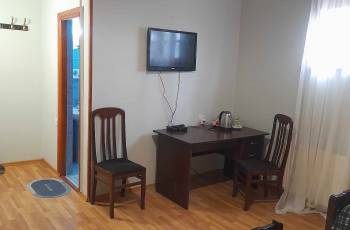 Apartment for daily rent in a newly built building. In the apartment you will find all necessary equipment: towels, bathrobes, disposable slippers, bed linen, hygiene products (shampoo, liquid soap, toothbrush and paste, hygiene kit, toilet paper), dishes, water, tea/coffee. The apartment has a refrigerator, electric kettle, microwave oven, washing machine with dryer, hair dryer, TV and WIFI. There is a beautiful view from the balcony. You will feel cozy and comfortable. Price from 50 GEL (depending on the duration of the reservation).