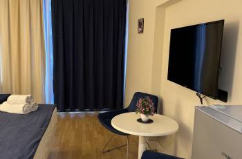 1 and a half-room apartment for daily rent near Peking Street, near the "Technical University" metro station (Bukia Bagh) with perfect cleanliness (with ironed bed linen): with Euro renovation, central heating, hot water, air conditioner, necessary furniture, washing machine, internet, TV. The price for one or two hours is 40 GEL. Daily price 80 GEL.
