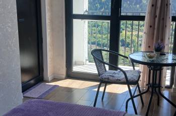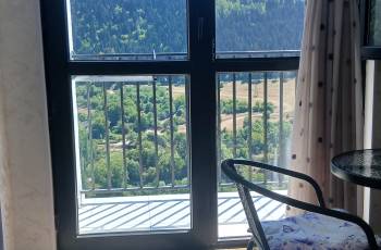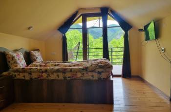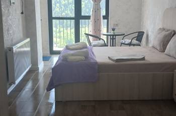 Isolated rooms of different categories are for rent in an ecologically clean environment, near the forest in Borjomi. 1. Studio room - accommodates 2+1 persons. Newly renovated, has its own bathroom, kitchen space, outside isolated sitting area with mountain view. 2. Two-room apartment with stained glass windows with its own balcony and a panoramic view of the mountain. Sleeps 4. Spring and the pollination season are especially beautiful and visible in Borjomi, especially near the forest, very close to the center. Book and feel the fresh and fresh air of the forest.