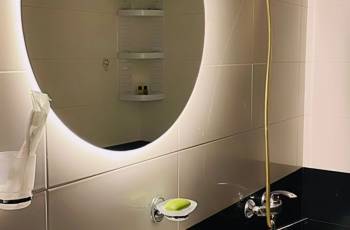 დაგხვდებათ თეთრი თეთრეული,თეთრი პირსახოცები,თეთრი ხალათები,ერთჯერადი მოხმარების ნივთები,65 ინჩიანი დიდი ზომის სმარტ ტელევიზორი,ჯაკუზი მასაჟორების ფუნქციით,მეამას ყავა.