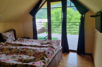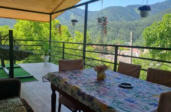 Isolated rooms of different categories are for rent in an ecologically clean environment, near the forest in Borjomi. 1. Studio room - accommodates 2+1 persons. Newly renovated, has its own bathroom, kitchen space, outside isolated sitting area with mountain view. 2. Two-room apartment with stained glass windows with its own balcony and a panoramic view of the mountain. Sleeps 4. Spring and the pollination season are especially beautiful and visible in Borjomi, especially near the forest, very close to the center. Book and feel the fresh and fresh air of the forest.