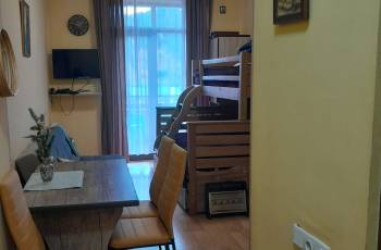 25 sq.m. for rent. One-room furnished apartment in Bakuriani, (Tsakadze 14, "Bakuriani City") for 3+1 persons. The apartment has all necessary appliances, dishes, wifi, television. There is a children's playground in the yard of the complex. The price varies depending on the number of days and seasons