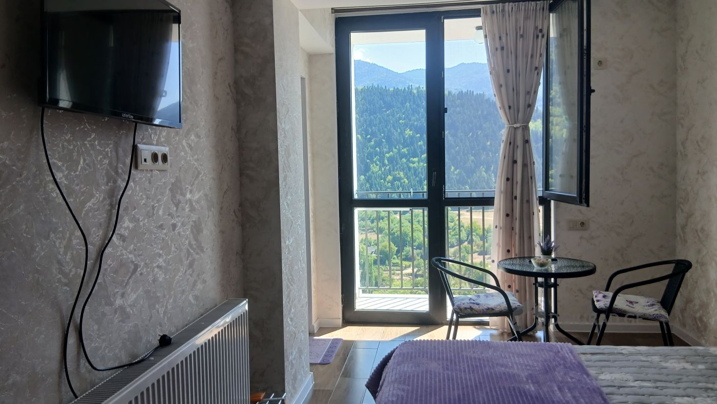 Сдается недавно отремонтированная квартира с оштукатуренным балконом, гармонично сочетающимся видом на реку Кура, исторический замок Петра и горы. Вмещает 2 человек.
