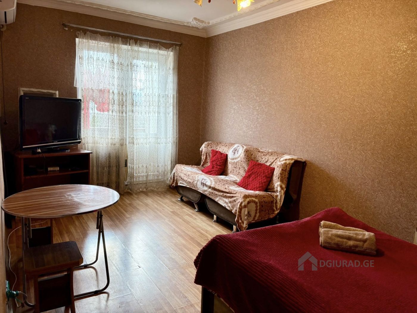 ქირავდება დ ღ ი უ რ ა დ ქუთაისში, გარემონტებული ერთ ოთახიანი ბინა, კონდიციონერით, ცივიცხელი წყლით, წყლის ავზით, აივნით, რკინის კარებით, გაზქურით, კარმით, გაზის წყლის გამათბობლით, მაცივრით, სარეცხი მანქანით, ტელევიზორით, მეტალოპლასტმასის კარფანჯრებით, რკინის კარებით, ინტერნეტით, სამზარეულოს ინვენტარით და ახალი ავეჯით. მის: აღმაშენებლის გამზირი #142 ფასი: 50 ლარი. ტელ: 577417579