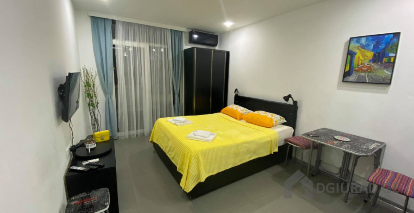 Сдается квартира-студия. Адрес: Кобаладзе 2, первая полоса моря. Комната, ORBI Residence, с прекрасным видом на море. Квартира оборудована всей необходимой техникой и мебелью.