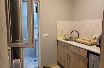 1. Номер-студия с изолированным санузлом и кухонной зоной. Рассчитан на 2+1 человека 2. Двухкомнатный номер с большим балконом и панорамным видом на горы – рассчитан на 4 человека. Городской транспорт останавливается у дома, пассажирский. цена 0,20 тет. В 20 метрах есть продуктовый магазин.