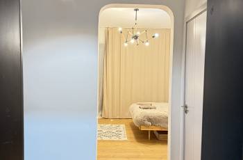 2-комнатная (1 спальня, гостиная и кухня-студия) уютная квартира в посуточную аренду на проспекте Руставели, за зданием Парламента Грузии. Рядом с домом: метро Площадь Свободы (8 мин), ТЦ «Галерея» (8 мин) и автобусная остановка (5 мин). Мтацминда Парк, супермаркет Никора и Спар 24/7, аптека PSP.
