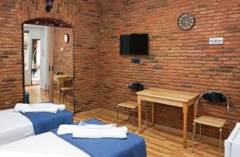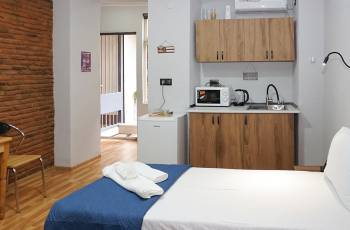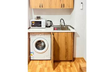 ● სამზარეულო, ჩაშენებული ქურით, მაცივარი, აბაზანა, ცენტრალური გათბობა. ჭურჭელი, თმის ფენი, უთო, ტელევიზორი, ინტერნეტი ყველანაირად აღჭურვილია.