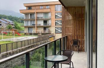 აპარტამენტებს აქვს აივანი, საიდანაც იშლება ტყის ხედი, დაისვენეთ და განიტვირთეთ.