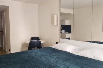 მგზავრების მეექვსე კორპუსის მეორე სართულზე ქირავდება ორ ოთახიანი ბინა,რომელიც გათვლილია 4+2 პერსონაზე.მისი ფართობი შეადგენს 38 კვადრატს.ბინა აღჭურვილია ჩამონტაჟებული ელექტრო გასქურით,მაცივრით,სარეცხი მანქანით,ტელევიზორითა და ინტერნეტით.საძინებელში არის ორი ორ სართულიანი საწოლი თავისი სათავსოთი და ტევადი კარადით.სტუდიოს ოთახში განთავსებულია გასაშლელი დივანი.ბინას აქვს დიდი მზიანი აივნითან უნდა იქონიოთ საკუთარი თეთრეული,ან შეგიძლიათ იქირაოთ ადგილზე.