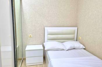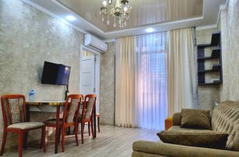 ზღვის სანაპიროსთან, ახალი ბულვარის დასაწყისში. ორ საძინებლიანი ბინა. ევრო რემონტით და ხარისხიანი ინვენტარით, აღჭურვილია საჭირო ნივთებით. ნაგებობა არის საცხოვრებელი კორპუსის სახის, მყარი კედლებით, რაც უზრუნველყოფს გარე-შიდა ხმების იზოლაციას.