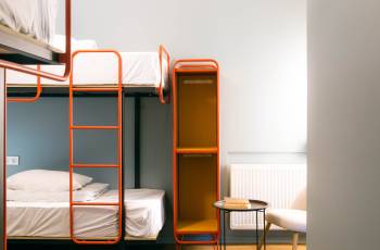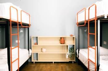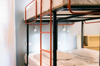 Функциональный групповой номер на 6 человек в отеле Ruby с тремя двухъярусными кроватями, общей ванной комнатой и туалетами. Идеально подходит для комфортного отдыха с друзьями и семьей.