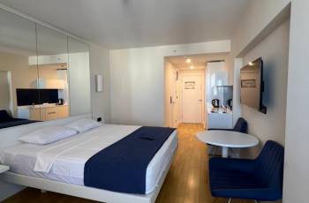 დაგხვდებათ თეთრი თეთრეული,თეთრი პირსახოცები,თეთრი ხალათები,ერთჯერადი მოხმარების ნივთები,65 ინჩიანი დიდი ზომის სმარტ ტელევიზორი,ჯაკუზი მასაჟორების ფუნქციით,მეამას ყავა.